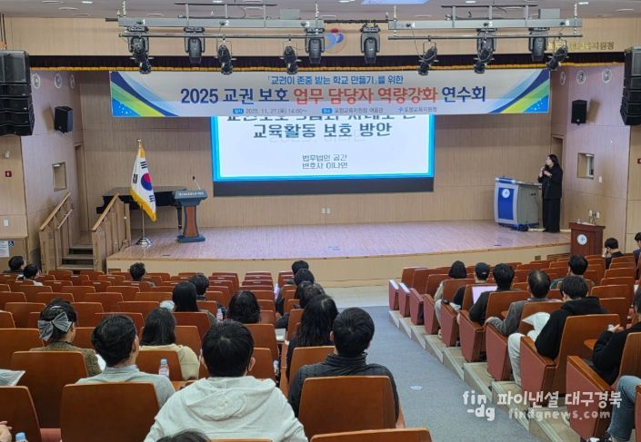 파이낸셜대구경북 김유신 기자 | 포항교육지원청은 2025년 11월 27일 여울관에서 관내 초·중·고 교권보호 업무 담당자를 대상으로 교권이 존중받는 학교문화 조성을 위한 업무담당자 역량강화 연수를 진행했다.