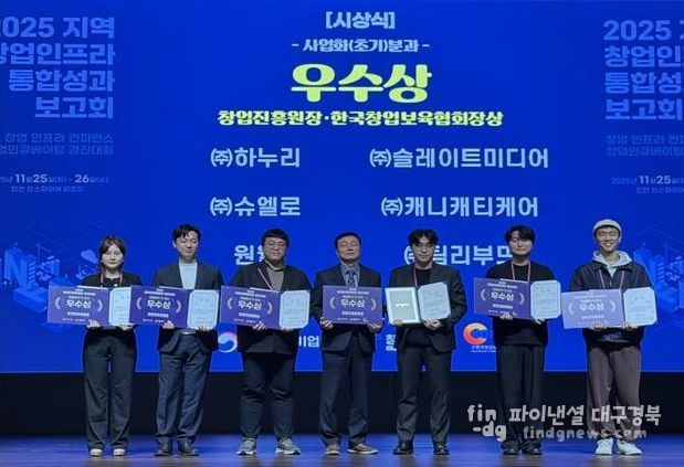 파이낸셜대구경북 김유신 기자 | 대구 수성구는 지난 25일 인천 인스파이어 리조트에서 열린 ‘2025년 지역 창업 인프라 통합 성과보고회’에서 수성구 중장년 기술창업센터 입주기업 ㈜캐니캐티케어(대표 홍재우)가 ‘창업 인큐베이팅 경진대회’ 초기사업화 서비스분과에서 우수상(창업진흥원장상)을 수상했다고 밝혔다.