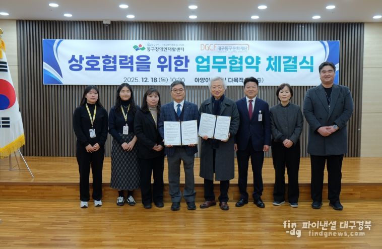 파이낸셜대구경북 김유신 기자 | (재)대구동구문화재단(이사장 윤석준)과 동구장애인재활센터(센터장 이종근)는 지난 12월 18일, 지역 장애인의 건강증진과 생활체육 활성화를 위한 업무협약(MOU)을 체결했다.
