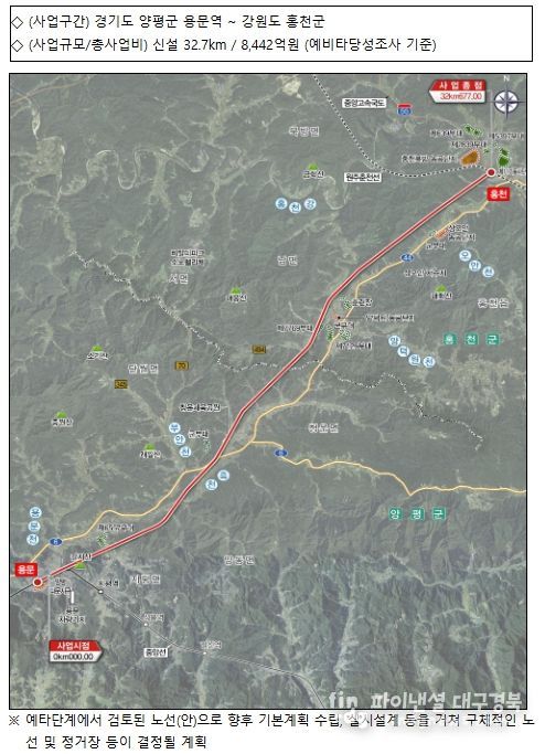 파이낸셜대구경북 기자 | 국토교통부는 12월 22일 열린 재정사업평가위원회(기획재정부 주관)에서 용문~홍천 광역철도 건설사업이 예타를 통과하고, 증평-호법 등 2개 고속도로 확장사업이 예타 대상 사업에 선정됐다고 밝혔다.