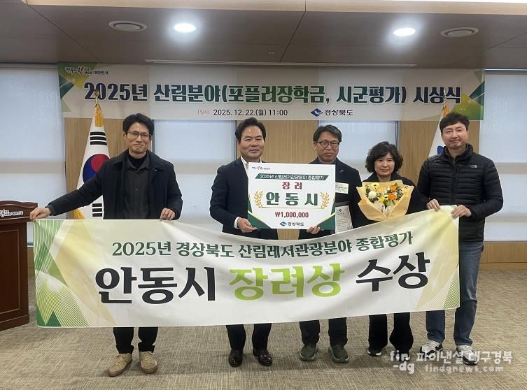 파이낸셜대구경북 김유신 기자 | 안동시는 경상북도 주관 12월 22일 ‘2025년 산림레저관광분야 종합평가’에서 장려상을 수상했다고 밝혔다.