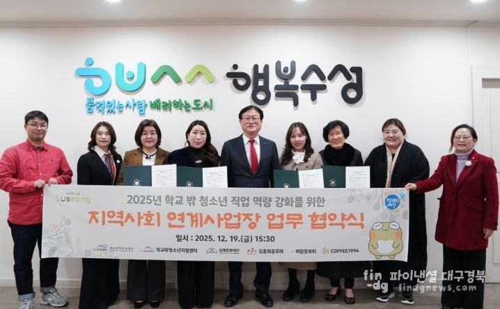 수성구는 이번 협약을 계기로 지역사회 기관과의 연계를 강화해 학교밖청소년들의 사회적 고립을 예방하고, 안정적인 사회 진입을 적극 지원할 계획이다.
