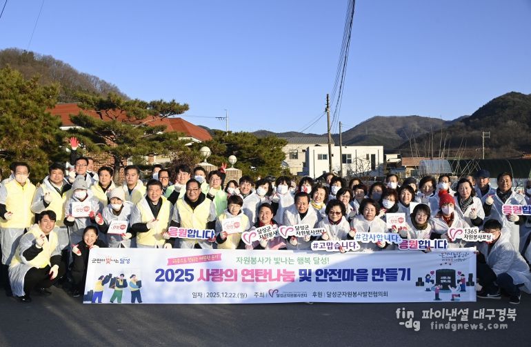 파이낸셜대구경북 김유신 기자 | 달성군자원봉사센터(센터장 송종구)는 12월 22일 달성군 관내 에너지·안전 취약계층 9가구를 대상으로 연탄 총 3,150장(1가구당 350장)과 화재 안전 예방키트를 전달하는 ‘2025 사랑의 연탄나눔 및 안전마을 만들기’ 활동을 추진했다.