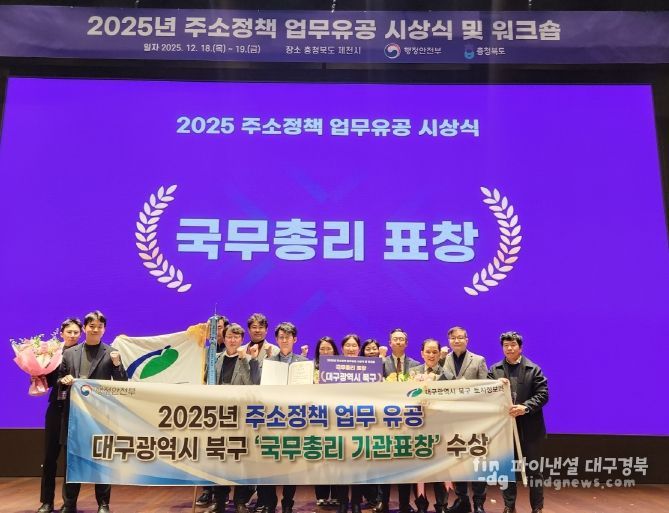 파이낸셜대구경북 김유신 기자 | 대구 북구청은 2025년 주소정책을 성공적으로 추진한 공로를 인정받아 국무총리 기관 표창을 수상했다.