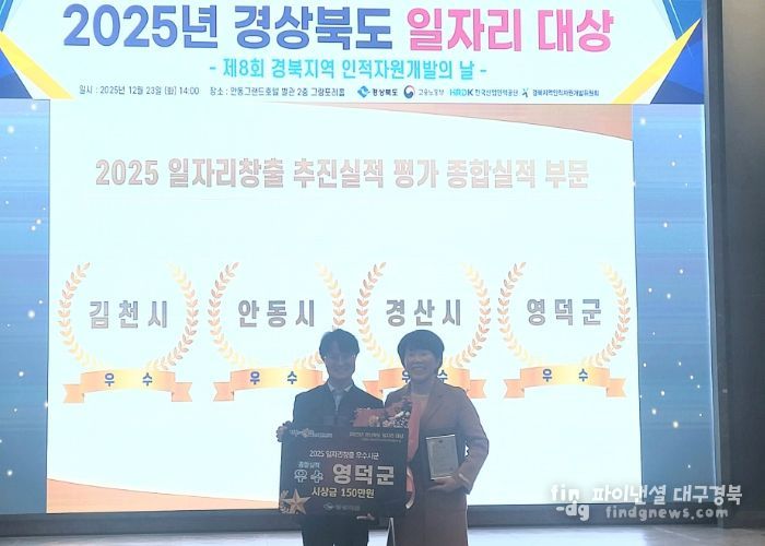 파이낸셜대구경북 기자 | 영덕군은 일자리 사업의 중요성을 알리고 우수사례를 공유하기 위해 지난 23일 열린 2025 경상북도 일자리 창출 추진 실적 평가에서 우수상을 받았다.