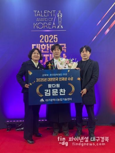파이낸셜대구경북 김유신 기자 | 대구 청년농업인 김문찬 팜다원 대표가 12월 24일 세종시 정부세종컨벤션센터에서 열린 ‘2025년 대한민국 인재상’ 시상식에서 대한민국 인재상을 수상했다.
