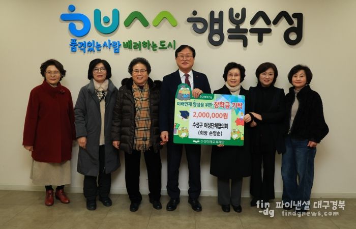 손영순 수성구여성단체협의회장은 “회원들의 작은 정성이 지역의 미래를 이끌 인재들에게 도움이 되길 바라는 마음으로 장학금을 마련했다”며 “앞으로도 지역사회와 함께하는 나눔 활동을 지속해 나가겠다”고 전했다.