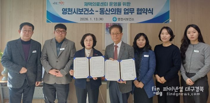 파이낸셜대구경북 기자 | 영천시는 13일 장기요양 수급자 등 거동이 불편한 환자들에게 체계적인 재택의료 서비스를 제공하기 위해, 민간의료기관인 동산의원과 ‘장기요양재택의료센터 시범사업’ 추진을 위한 업무협약(MOU)을 체결했다고 밝혔다.