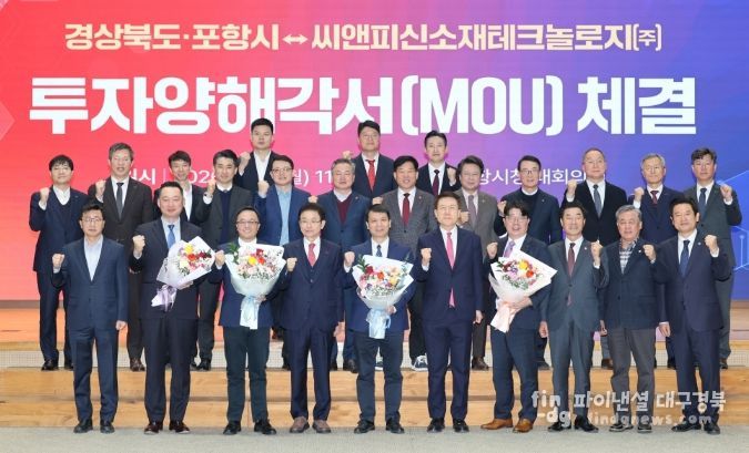 파이낸셜대구경북 기자 | 포항시와 경상북도는 19일 포항시청 대회의실에서 씨앤피신소재테크놀로지㈜와 5,000억 원 규모의 투자양해각서(MOU)를 체결했다.