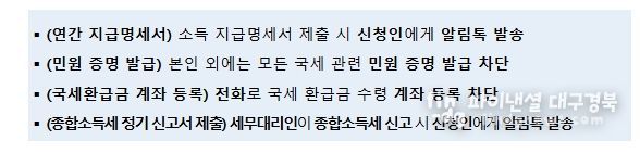 이 밖에도 명의도용으로 인한 피해가 예상되는 국세행정 업무에 대해 다음과 같은 서비스를 시행한다.