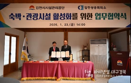 파이낸셜대구경북 기자 | 김천시시설관리공단은 김천상공회의소와 함께 김천지역의 숙박 및 관광시설 활성화를 위한 업무협약을 체결했다.