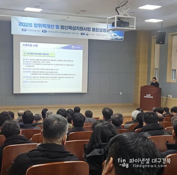 시는 지난 29일 구미 금오테크노밸리 IT의료융합기술센터 1층 대강당에서 '2026년 방위력개선 및 방산육성지원사업 통합설명회'가 개최됐다고 밝혔다.