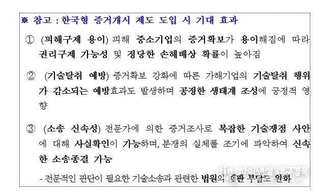 특히, 미국, 독일, 일본 등에서는 이미 증거개시 제도를 시행중인 데 반해, 한국에서는 관련 제도가 부재해 기술보호를 위한 기술 선진국 수준의 제도 마련 필요성이 끊임없이 제기되어 왔었다.