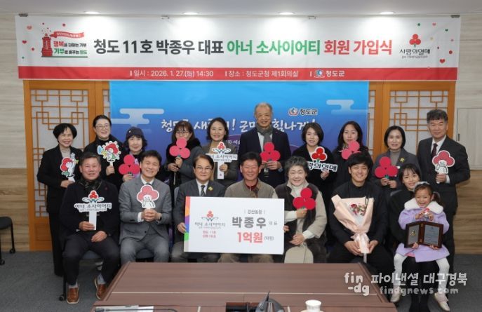 파이낸셜대구경북 기자 | 강산농장 박종우 대표는 지난 27일 청도군청에서 아너 소사이어티 회원 가입식을 가졌다.