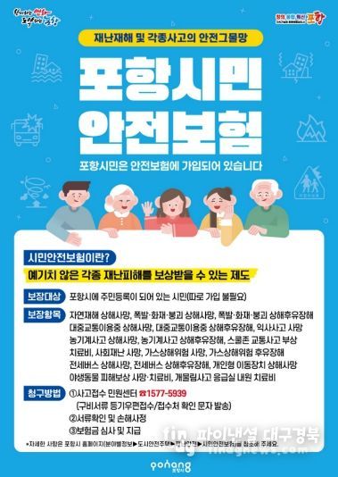 한편 포항시는 최근 3년간 시민안전보험을 통해 총 132건, 약 14억 원 규모의 보험금을 지급하며 재난과 사고로 피해를 입은 시민들의 생활 안정에 실질적인 도움을 제공해 왔다.
