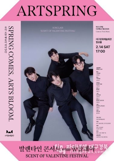 파이낸셜대구경북 김유신 기자 | 대구문화예술진흥원 대구문화예술회관은 오는 2월 14일 오후 5시, 팔공홀에서 지역 성악가로 구성된 남성 4인조 크로스오버 보컬 그룹 송클레어(SONCLAIR)와 함께하는 ‘발렌타인 콘서트 with 송클레어 – Scent of Valentine Festival’을 개최한다.