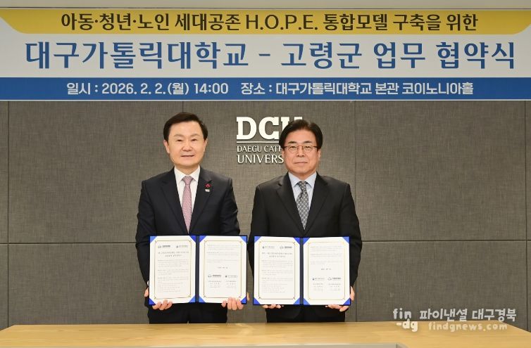 파이낸셜대구경북 기자 | 고령군은 2월 2일 대구가톨릭대학교와 함께 경상북도 지역혁신중심 대학지원체계(RISE)사업의 일환으로'경북 U-Care 맞춤돌봄서비스'추진을 위한 업무협약을 체결했다고 밝혔다.