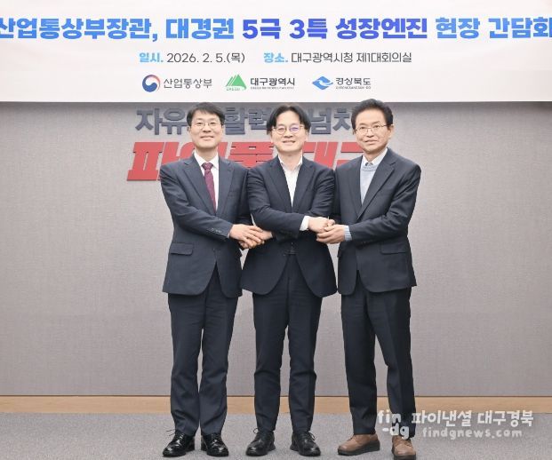 파이낸셜대구경북 기자 | 대구광역시는 2월 5일 대구광역시청 산격청사에서 김정관 산업통상부 장관 주재로 ‘대경권 5극 3특 성장엔진 전략산업 현장간담회’를 개최했다고 밝혔다.