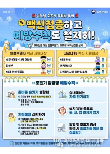 또한 인플루엔자 등 호흡기 감염병은 예방접종을 통해 감염 및 중증화를 효과적으로 예방할수 있으므로 이에 따라 아직 예방접종을 받지 않은 고위험군은 접종시기를 놓치지 말고 적극적으로 예방접종에 참여할 것을 권고했다.