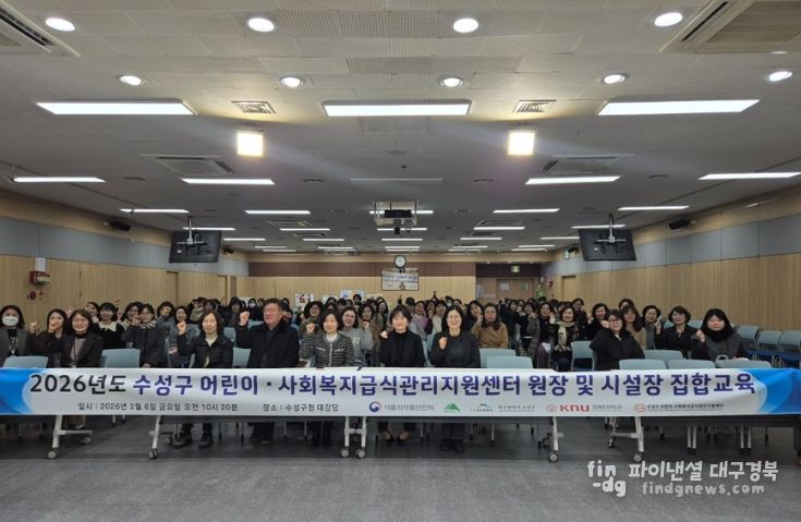 파이낸셜대구경북 김유신 기자 | 대구 수성구 어린이·사회복지급식관리지원센터는 지난 6일 수성구청 대강당에서 센터에 등록된 어린이 급식소 원장(시설장)을 대상으로 집합교육을 실시했다.