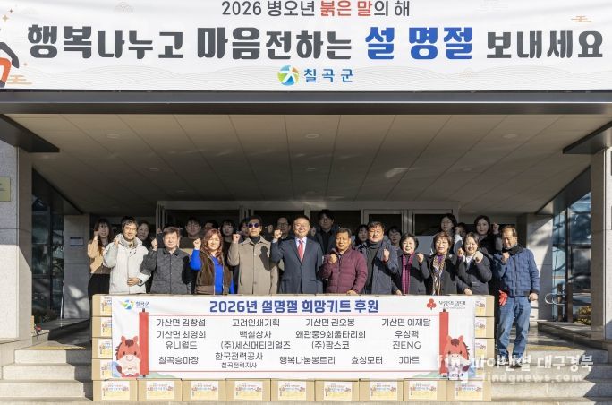 파이낸셜대구경북 기자 | 칠곡군은 지난 9일, 민족 대명절인 설을 앞두고 지역 내 사례관리 대상자 및 저소득 취약계층 100가구를 대상으로 ‘설맞이 희망키트’를 전달하며 이웃사랑을 실천했다.