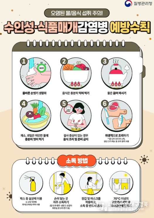이에 영천시는 지역 내 감염 확산 방지를 위해 예방 홍보 캠페인과 감염 예방 홍보물 배부 등 예방 활동에 힘쓰고 있으며, 집단급식소를 사용하는 학교와 유치원 등 교육·보육시설을 대상으로 개인 위생수칙 준수와 감염관리 강화를 요청했다.