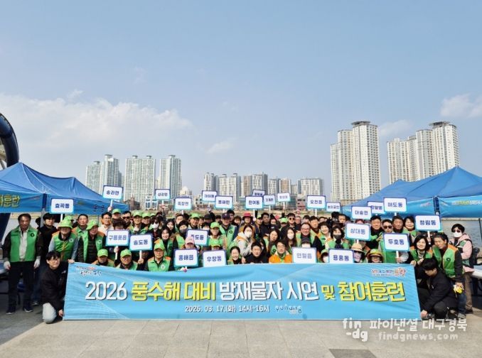 매년 반복되는 집중호우와 태풍으로 인한 피해를 최소화하기 위한 선제적 대응의 첫 단계로 17일 형산강 둔치에서 읍면동 담당자와 지역자율방재단이 참여한 가운데 풍수해 대비 방재물자 활용 훈련을 실시했다.