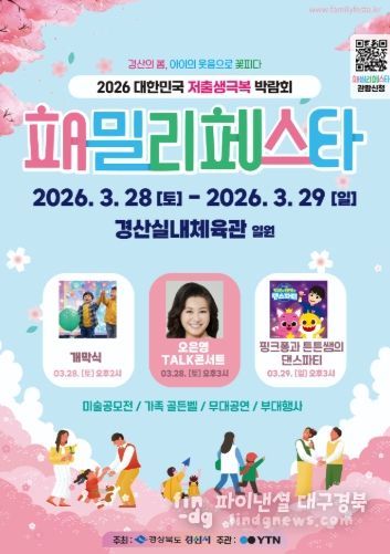 파이낸셜대구경북 기자 | 경산시는 가족친화적 사회 분위기를 조성하고 결혼·출산·양육에 대한 긍정적 인식을 확산하기 위해 28일과 29일 이틀간 경산 실내 체육관 일원에서 '2026 패밀리 페스타'를 개최한다.