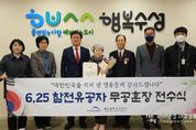 파이낸셜대구경북 김유신 기자 | 대구 수성구는 지난 28일 6·25전쟁에 참전해 공을 세운 故 우희진 일병의 유가족에게 화랑무공훈장과 증서를 전수했다. 이날 전수식에는 유가족 우성록 씨를 비롯해 김대권 수성구청장, 김인태 무공수훈자회 수성구지회장 등이 참석했다. 이번 전수는 국방부와 육군본부가 추진하는 ‘6·25 무공훈장 찾아주기 사업’의 일환으로, 전쟁 당시 서훈이 결정됐으나 긴박한 전장 상황으로 인해 실물 훈장과 증서를 전달받지 못했던 故 우희진 일병의 화랑무공훈장을 자녀 우성록 님에게 전달한 것이다. 화랑무공훈장은 대한민국의 네 번째 무공훈장으로, 전투에 참여해 높은 공적을 세운 유공자에게 수여하는 훈장이다. 김대권 수성구청장은 “호국 영웅과 그 가족의 헌신을 잊지 않고 기억하는 것이 오늘날 우리가 해야 할 일”이라며 “앞으로도 국가를 위해 헌신하신 국가유공자와 보훈 가족분들을 존중하고 예우하는 보훈 정책을 펼쳐 나가겠다”고 말했다. 한편, ‘6·25전쟁 무공훈장 찾아주기 사업’은 2019년부터 국방부와 육군본부가 추진하고 있는 사업으로, 당시 무공훈장 서훈이 결정됐으나 긴박한 전
