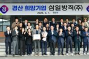 파이낸셜대구경북 기자 | 경산시는 2026년 2분기 경산 희망기업으로 삼일방직(주)을 선정하고, 1일 시청 대회의실에서 경산 희망기업 선정식을 가져 트로피와 현판을 수여했다. 진량읍에 위치한 삼일방직(주)(대표 노희찬)은 45년 이상의 업력을 보유한 섬유 제조 강소기업으로 2010년 부설 연구소(PILOT 공장)를 설립하여 신제품개발과 공정개선에 집중하며 2013년 섬유업계 최초로‘월드클래스 300 프로젝트’에 선정되는 쾌거를 이루며 지역기업으로서 탄탄한 기반을 다져왔다. 특히, 2017년에는 미국 애틀란타 소재의 중견 방적 기업인 뷸러 퀄리티얀스(BQY)를 인수하는 전략적 선택과 단계적인 설비 투자로 현지화에 성공하며 미주와 유럽 시장에 진출하는 교두보를 마련했다. 또한, 사원들의 자기 계발 교육비 지원, 학자금 지원 제도, 근로복지 기금을 운영하며 근로자의 삶의 질 향상에도 최선을 다해왔다. 그로 인해 창립 이래 단 한 번의 노사분규도 발생하지 않았으며, 노(勞)와 사(使)가 상생 협력하는 선진적인 노사 문화 정착에 앞장섰다. 노희찬 대표는 “경산 희망기업으로 선정되어 지역기업으로서 책임감이