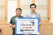 파이낸셜대구경북 강대산 기자 | 영덕군 출신의 기업가 ㈜에이치앤티 고기한 대표가 지난 9일 김광열 영덕군수를 찾아 취약계층 지원에 써달라며 성금 1,000만 원을 전달했다. 고 대표는 지난 3월 말 경북산불로 큰 피해가 발생한 영덕군에 지역 재건과 이재민들을 위한 성금 1,000만 원을 기부하는 등 남다른 고향 사랑을 이어가고 있다. 김광열 영덕군수는 “고향에 대한 끝없는 관심과 애정에 깊은 존경심과 함께 영덕군민을 대표해 감사한 마음을 전한다”며, “주신 성금은 영덕복지재단에 기탁돼 지역복지 향상을 위해 소중하게 사용되도록 하겠다”라고 고개를 숙였다. [뉴스출처 : 경상북도영덕군]