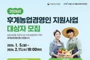 파이낸셜대구경북 김유신 기자 | 대구광역시농업기술센터는 미래 농업 인력의 주축이 될 유능한 농업인을 육성하기 위해 ‘2026년도 후계농업경영인 선발’을 위한 신청을 받는다. 후계농업경영인 육성사업은 농업의 지속적인 발전을 이끌 유망한 예비 농업인과 농업경영인을 발굴해, 일정 기간 자금·교육·컨설팅 등을 종합적으로 지원함으로써 정예 농업 인력으로 육성하기 위한 제도다. 신청 대상은 만 18세 이상 만 50세 미만으로, 영농에 종사한 경력이 없거나 10년 미만인 농업인이다. 선발은 서류심사와 평가 절차를 거쳐 최종 확정된다. 선발자에게는 연리 1.5%, 5년 거치 20년 원금 균등분할 상환 조건으로 세대당 최대 5억 원의 정책자금이 융자 지원되며, 지원금은 농지 구입, 시설 설치, 농기계 구입 등 영농 기반 마련에 활용할 수 있다. 신청 기간은 1월 5일부터 2월 11일 오후 6시까지이며, 신청은 온라인으로만 가능하다. 신청을 희망하는 대상자는 차세대 농림사업정보시스템 ‘농업e지’를 통해 온라인으로 신청하면 된다. 신청 마감일에는 접속 지연 등으로 원활한 신청이
