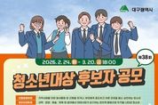 파이낸셜대구경북 김유신 기자 | 대구광역시는 건강하고 바른 성장으로 지역사회의 귀감이 된 청소년을 발굴·포상하기 위해 ‘2026년 제38회 대구광역시 청소년대상’ 후보자를 2월 24일부터 3월 20일까지 공개 모집한다. 1989년 첫발을 내디딘 ‘청소년대상’은 건강하고 올바른 청소년 상(像) 정립을 위해 매년 각 분야의 모범 청소년을 시상해 왔다. 지난해까지 총 250명(대상 36명, 우수상 111명, 장려상 103명)의 수상자를 배출하며 지역을 대표하는 청소년 포상으로 자리 잡았다. 후보자 자격은 공고일(2.23.) 현재 대구시에 1년 이상 계속 거주하고 있는 만 9세 이상 24세 이하 청소년으로, 구청장·군수, 학교장, 청소년 관계기관장 등의 추천을 통해 접수할 수 있다. 시상 부문은 △선행효행 △창의인재 △푸른성장 3개 분야며, 선정 인원은 대상 1명을 포함해 각 부문별 우수상 1명, 장려상 1명씩 총 7명이다. 대상은 수상 후보자 중 여러 면에서 성품과 행동이 가장 훌륭해 모든 청소년의 귀감이 되는 청소년에게 수여된다. 선행효행 부문은 지역사회를 위한 봉사활동 중 선행을 하거나,