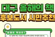파이낸셜대구경북 김유신 기자 | 대구광역시는 책 읽는 도시 조성을 위해 매년 ‘대구 올해의 책’ 10권을 선정·홍보하고 있다. 올해는 대구도서관 개관을 계기로 시민 참여를 더욱 확대하고자 시민추천단을 운영하여 시민 관심도와 참여도를 한층 높일 계획이다. 2026년 ‘대구 올해의 책’ 선정은 △도서추천단 후보도서 추천 △도서선정위원회 심의 △온라인 시민투표 및 최종 도서 선정의 방식을 거치게 된다. 도서추천단에는 분야별 독서 전문가, 구·군 및 교육청 대표사서, 시민, 지역출판협동조합 등 다양한 주체가 참여한다. 시민추천단은 대구도서관 누리집을 통해 대구시민이라면 누구나 참여 가능하며, 어린이·청소년·성인 분야별로 1권씩 총 3권까지 추천할 수 있다. 추천 대상 도서는 △국내 작가가 발간한 2년 이내 단행본 △사회적으로 공감할 수 있는 주제의 도서 △스테디셀러로 자리매김할 수 있는 도서여야 한다. 다만 종교·정치 성향 도서와 과거 ‘대구 올해의 책’ 선정 도서는 제외된다. 추천 기간은 2월 24일 오후 6시까지다. 시민추천단이 추천한 도서는 상위