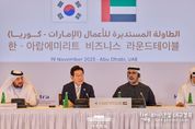 파이낸셜대구경북 김유신 기자 | 아랍에미리트(UAE)를 국빈 방문한 이재명 대통령은 19일(현지시간) "인공지능 중심의 첨단산업 협력을 통해 미래 성장 동력을 함께 창출하자"고 제시했다. 또 "청정 에너지와 방산 분야 협력을 고도화해 세계 최강국으로 함께 성장할 모멘텀을 확보하자"고도 했다. 이 대통령은 이날 아부다비 소재 한 호텔에서 열린 '한-UAE 비즈니스 라운드 테이블' 행사에 참석해 양국 정부 및 기업의 교류 확대 필요성을 강조하며 이같이 언급했다. 이번 행사는 이 대통령의 UAE 국빈 방문을 계기로 개최된 경제행사로 한국경제인협회, 대한무역투자진흥공사, UAE 대외무역부, 아부다비 상공회의소가 공동 주최했으며, 양국 정부, 기관, 기업 관계자 40여 명이 함께했다. 이 대통령은 기조연설을 통해 "한국과 UAE는 바라카 원전 건설, 아크부대 파견 등으로 서로의 발전을 이끌어오며 진정한 형제의 나라이자 동반자인 라피크(Rafiq)로 거듭나고 있다"라며, "2071년까지 UAE가 세계 최고 국가로 도약하기 위한 최적의 파트너가 한국"임을 강조했다. 아랍어 라피크(Rafiq)는 먼 길을 함께하