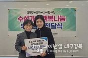 파이낸셜대구경북 김유신 기자 | 대구 수성구가족센터는 지난 17일 국공립키즈하버드어린이집과 국공립하늘채르레브어린이집이 연말을 맞아 지역사회를 위한 따뜻한 나눔을 실천했다. 이날 국공립키즈하버드어린이집은 500만 원 상당의 밍크 목도리를 후원했으며, 국공립하늘채르레브어린이집은 후원금 100만 원과 150만 원 상당의 아동 학습용품을 기탁했다. 전달된 후원 물품은 성탄절을 맞아 지역 내 다문화가정에 선물로 지원될 예정이며, 후원금은 결혼이민자의 안정적인 자립을 돕기 위한 자립지원사업에 사용될 계획이다. 정순화 센터장은 “두 어린이집은 올해 초에도 다문화가정과 저소득가정을 위해 나눔을 실천해 주셨다”며 “지역사회에 대한 지속적인 관심과 따뜻한 마음에 깊이 감사드린다”고 말했다. 국공립키즈하버드어린이집과 국공립하늘채르레브어린이집은 아이들과 함께 나눔의 가치를 실천하며, 지역사회 이웃을 향한 따뜻한 마음을 수성구가족센터를 통해 꾸준히 전하고 있다. [뉴스출처 : 대구시 수성구]