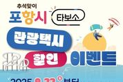 파이낸셜대구경북 신영숙 기자 | 포항시는 추석 연휴와 가을 관광 성수기를 맞아 ‘타보소 관광택시 할인 이벤트’를 오는 22일부터 예산 소진 시까지 진행한다. 이번 특별 프로모션은 지역을 찾는 관광객들의 교통 편의를 제공하고 지역 관광 활성화를 위해 진행한다. 최근 SRT 증편으로 포항을 찾는 철도 관광객이 늘어나고 있으나, 현지에서 차량이 없는 방문객들이 겪는 교통 불편 문제를 보완해 관광 접근성을 높일 것으로 기대하고 있다. 타보소 앱을 통해 가입하고 예약한 관광객은 이용 금액의 30% 할인을 받을 수 있으며, 차량당 최대 5시간까지 지원된다. 예를 들어 3시간 기본 이용요금 8만 원은 5만 6,000원, 5시간 기본 이용요금 12만 5,000원은 8만 7,500원으로 30% 할인 적용된 금액으로 저렴하게 이용할 수 있다. 특히 타보소 관광택시는 KTX 포항역, 포항경주공항, 시외버스터미널 등 주요 거점에서 예약 탑승이 가능하며, 포항의 주요 관광지를 잘 아는 기사들이 직접 안내까지 맡아 ‘운전기사 겸 관광안내사’ 역할을 해 관광객들이 교통 걱정 없이 편리하게 이동하며, 현지인의 생생