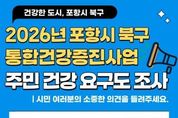 파이낸셜대구경북 신영숙 기자 | 포항시 북구보건소는 9월부터 10월까지 두 달간 북구 지역 주민을 대상으로 ‘통합건강증진사업 주민 건강요구도 조사’를 실시한다고 밝혔다. 이번 조사는 지역사회 건강문제와 주민들의 요구를 파악해 사업 우선순위를 정하고, 시민 건강수준을 분석해 2026년 지역사회 통합건강증진사업 계획 수립에 반영하기 위해 마련됐다. 설문은 ▲지역사회 건강문제 ▲보건소 건강증진사업 참여도 및 인식도 ▲우선 추진이 필요한 건강증진사업 ▲보건사업 대상 선정 우선순위 등 총 12문항으로 구성되며, 포항시 및 남·북구보건소 홈페이지에 게시된 QR코드를 통해 온라인으로 참여할 수 있다. 응답자 중 300명을 추첨해 모바일 상품권도 지급할 예정이다. 북구보건소 관계자는 “이번 조사는 주민이 필요로 하는 사업을 정확히 파악하기 위한 것인 만큼 시민들의 적극적인 참여를 부탁드린다”며 “앞으로도 시민 수요에 맞춘 통합건강증진사업을 내실 있게 추진해 시민들이 건강한 삶을 누릴 수 있도록 하겠다”고 말했다. 자세한 문의는 북구보건소 건강관리과 건강생활팀으로 하면 된다. [뉴스출처 : 경북도포항시]