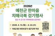 파이낸셜대구경북 기자 | 예천군은 오는 13일부터 22일까지 치매 예방에 효과적인 걷기 실천을 장려하고 지역 주민의 건강한 생활 습관 형성을 위해'2026년 한마음 치매극복 걷기 행사'를 비대면 방식으로 운영한다. ‘경상북도 한마음 치매극복 걷기 행사’의 일환으로 추진되는 이번 행사는 시간과 장소의 제약 없이 참여할 수 있도록 스마트폰을 활용한 비대면 걷기 챌린지 방식으로 운영해, 지역 주민의 자발적인 건강관리 참여를 유도하는 데 목적이 있다. 참여 대상은 치매 예방 관리가 필요해 모바일 치매예방 플랫폼 ‘인지케어 앱’을 설치한 60세 이상 주민이다. 챌린지는 앱을 통해 참여할 수 있으며, 10일간 총 6만 보 걷기와 일기 2회 작성을 목표로 일일 최대 1만 보까지 인정된다. 챌린지 성공 시 예천사랑상품권 1만 원권(지류)을 지급할 예정이며 달성자가 150명 이상일 경우, 추첨을 통해 지급된다. 특히 이번 행사는 올해 신규 치매예방사업인 ‘스마트 기억놀이터’와 연계해 운영되며, 걷기 활동과 인지 자극 활동을 병행함으로써 치매 예방 효과를 높일 방침이다. 임미란 보건소장은