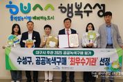 파이낸셜대구경북 김유신 기자 | 대구 수성구는 대구시 주관 2025 공공녹색제품 구매 평가에서 ‘최우수기관’으로 선정됐다고 밝혔다. 이번 평가는 대구시 9개 구·군을 대상으로 공공녹색제품 구매 실적(합동평가)을 통해 지속 가능한 소비문화 확산과 자원순환 활성화, 탄소중립 달성에 기여한 성과를 평가한 것이다. 수성구는 2024년 한 해 동안 전체 제품 구매액 대비 녹색제품 구매율 70%를 기록해 대구시 자치구 중 가장 높은 수치를 보였다. 이는 지난해 ‘우수기관’ 선정에 이어, 전 부서가 적극적으로 녹색제품을 구매하고 관리 체계를 공고히 한 협업의 성과다. 김대권 수성구청장은 “이번 최우수기관 선정은 수성구가 탄소중립 실현을 향한 확고한 의지를 보여준 성과”라며 “앞으로도 녹색제품 구매를 지속적으로 확대해 환경친화적 행정과 지속 가능한 미래를 선도해 나가겠다”고 말했다. [뉴스출처 : 대구시수성구청]