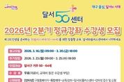 파이낸셜대구경북 김유신 기자 | 대구 달서구는 50플러스세대의 역량 강화와 자기계발을 지원하기 위해‘2026년 2분기 달서50플러스센터 정규강좌’수강생을 3월 16일부터 25일까지 선착순 모집한다. 달서50플러스센터는 50~64세 중장년층이 제2의 인생을 준비할 수 있도록 다양한 평생교육 프로그램을 분기별로 운영하고 있다. 이번 2분기 강좌는 자격증, 취·창업, 디지털, 어학, 음악·미술 등 9개 분야 총 27개 과정으로 구성된다. 교육은 2026년 4월 13일부터 6월 26일까지 강좌별 최대 10주 과정으로 운영되며, 50플러스세대를 위한 창업 특강과 스트레스 관리 기획특강도 함께 진행될 예정이다. 신청 대상은 주민등록상 달서구에 거주하는 50~64세 주민이며, 수강료는 무료이다. 수강 신청은 인터넷 접수 또는 전화 접수로 가능하며, 자세한 내용은 달서구청 홈페이지 통합예약 시스템을 확인하거나 달서50플러스센터로 문의하면 된다. 이태훈 달서구청장은 “자격증 취득과 취·창업 등 다양한 교육 프로그램을 통해 50플러스세대가 제2의 인생을 스스로 설계하고 새로운 활력을 찾을 수