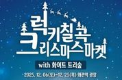 파이낸셜대구경북 기자 | 경북 칠곡군은 오는 12월 6일부터 왜관역 광장 일원에서‘2025 럭키칠곡 크리스마스 마켓’을 개최한다. 겨울축제가 없는 칠곡에서 연말연시를 따뜻하고 환하게 밝혀줄 겨울철 신규 관광콘텐츠로 기획된 럭키칠곡 크리스마스 마켓은 ‘with 화이트 트리숲’을 부제로 12. 6. / 12. 13. / 12. 20. / 12. 24. / 12. 25. 총 5회에 걸쳐 오후 4시부터 오후 9시까지 운영한다. 지역 소상공인 셀러가 참여하고 크리스마스 디자인으로 예쁘게 꾸며진 마켓은 ▲크리스마스 용품 ▲수공예품 ▲먹거리(겨울간식 등) ▲농․특산품 등 다양한 제품을 선보일 예정이며 미니트리&케익&쿠키 만들기, 소원등 달기, 군밤체험 등 가족 및 연인들에게 특별한 추억을 선사할 체험 콘텐츠도 준비하여 관광객을 맞이할 예정이다. 또한 마켓 운영일에는 버스킹, 마술, 마임 및 지역민이 참여한 성가대 등 다채로운 공연과 인플루언서 ‘산티’의 1분 캐리커쳐 및 칠곡 산타할매 등 이색 이벤트도 현장에서 진행되어 색다른 재미를 더할 예정이다. 특히 행사기간 동안 왜관역 광장에 대형트리를 포함한‘화이트