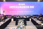 파이낸셜대구경북 김유신 기자 | 대한민국교육감협의회(회장 강은희 대구광역시교육감)는 1월 29일, 경기도 성남시 더블트리바이힐튼서울판교호텔에서 제106회 총회를 개최했다. 이번 총회에서는 전국 시도교육감 및 교육청 관계자, 협의회 사무국 관계자 약 200명이 참석하여 '사립학교의 ‘공직자 이해충돌방지법’ 적용을 위한 법령 개정 건의' 등 5개 안건을 심의·의결했고, '행정통합 추진에 따른 경과 및 쟁점'에 대해 교육의제로 토의했다. 이날 심의 안건은 ▲사립학교의 ‘공직자 이해충돌방지법’ 적용을 위한 법령 개정 건의, ▲외부강의 등 요청 표준서식 마련 요구, ▲‘보호자 협조·동의 관련’ 기초학력 보장법 및 동법 시행령 개정 요청, ▲교육활동 침해 학생의 학적변동 제한을 위한 법률 개정 건의, ▲학습지원 소프트웨어 관련 초·중등교육법 개정 제안으로 모두 5개의 안건을 심의·의결했고, 지난해 12월 11일 실무협의회를 통해 전국 17개 시도교육청의 전원 합의 과정을 거쳤다. 다음으로 2개 교육청에서 우수사례를 발표했는데, ▲(경기) 시·공간 경계를 넘어 세계를 잇는 한국어교육 온라인 경기한국어랭귀지스쿨(KLS 3섹터