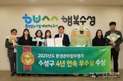 파이낸셜대구경북 김유신 기자 | 대구 수성구는 지난 24일 대구시가 주관하는 ‘2025년도 환경관리업무 평가’에서 4년 연속 우수상을 수상했다. 이번 평가는 대구시 9개 구·군을 대상으로 2025년 한 해 동안 추진한 환경정책, 기후대기, 수질개선 등 총 28개 항목의 환경관리 업무 추진 실적을 종합적으로 평가해 우수기관을 선정하는 방식으로 진행됐다. 수성구는 용학도서관 기후환경교육 우수도서관 지정, 생태관광 투어 등 다양한 환경교육 프로그램 운영, 녹색제품 구매 실적, 수질오염물질 배출사업장 관리, 자연환경 보전을 위한 망월지 생태축 복원사업 추진 등 다양한 분야에서 성과를 인정받았다. 김대권 수성구청장은 “탄소중립을 통해 기후변화에 적극 대응해야 하는 중요한 시기에 4년 연속 우수기관으로 선정돼 뜻깊다”며 “올해도 환경관리 분야 및 자연환경 보전사업을 내실 있게 추진해 쾌적하고 살기 좋은 수성구가 되도록 최선을 다하겠다”고 말했다. [뉴스출처 : 대구시 수성구]