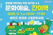 파이낸셜대구경북 김유신 기자 | (재)예천문화관광재단은 11월 1일 예천군 호명읍 산합문화공원(걷고싶은 거리)에서 ‘문화예술, 간이역’ 10월 프로그램을 개최한다. ‘문화예술, 간이역’은 문화체육관광부와 지역문화진흥원이 주관하고, (재)예천문화관광재단이 주최하는 ‘2025 문화가 있는 날 구석구석 문화배달’ 사업의 일환으로, 일상 속에서 문화를 자연스럽게 접하고 다양한 문화 향유 기회를 누릴 수 있도록 기획된 지역 밀착형 프로그램이다. 이번 프로그램은 9월에 이어 두 번째로 진행되는 야외형 문화행사로, 단풍으로 물드는 가을 정취 속에서 다채로운 공연과 체험이 어우러진 프로그램으로 구성됐다. 주요 프로그램으로는 싱어송라이터 ‘어치브’와 ‘퓨전국악 이어랑’이 함께하는 청춘콘서트, 가족 단위 관객을 위한 마술과 버블쇼, 환경문제 인식을 높이는 체험형 콘텐츠 ‘리사이클 정류장’, 감성을 자극하는 독서 프로그램 ‘북적북적 북크닉’이 준비된다. 특히 이번 북크닉에서는 예천 출신의 그림작가 송태고 작가와 함께하는 북 토크 콘서트와 클레이 체험 프로그램도 함께 진행되어 지역 예술가와의 교류를 통해 문화적 의미를