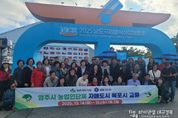 파이낸셜대구경북 김유신 기자 | 영주시 농업인단체인 농촌지도자회(회장 박재열)와 생활개선회(회장 엄복순)가 자매결연도시인 전남 목포시를 방문해 상호 화합과 농업 발전을 위한 교류 행사를 가졌다. 이번 교류는 10월 14일부터 15일까지 양일간 진행됐으며, 양 단체 운영위원 40명이 참여했다. 첫째 날에는 △남도국제미식산업박람회 참관 △목포 바다분수 관람 △환영식 참석 등의 일정을 통해 목포시 농업인단체와의 친선과 우의를 다졌다. 특히 환영식에서는 영호남 농특산물 교류 행사의 일환으로 영주의 풍기인삼과 목포의 대표 가공품인 울외장아찌를 교환하며 상생의 뜻을 나눴다. 둘째 날에는 목포종합수산시장을 견학한 뒤 담양 죽녹원과 메타세쿼이아길을 방문해 문화·관광 체험 프로그램을 함께했다. 이번 방문은 단순한 행사 이상의 의미를 지녔다. 두 도시는 지난 1998년 자매결연을 맺은 이후 농업·문화·체육 등 다양한 분야에서 꾸준히 교류를 이어오고 있으며, 2024년부터는 격년제로 상호 방문 교류행사를 실시하고 있다. 영주시 관계자는 “이번 교류는 영호남 농업인들이 함께 협력하며 미래 농업 발전을 모색하