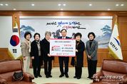 파이낸셜대구경북 김유신 기자 | 김천시는 지난 7일, 김천시 전직 여성 단체장 모임으로부터 희망2026나눔캠페인 성금 100만 원을 전달받았다고 밝혔다. 32명의 회원으로 구성된 김천시 전직 여성 단체장 모임은 김천시를 위해 헌신하며 지역사회 발전을 위한 다양한 활동을 이어왔다. 이번 성금 역시 따뜻한 연대의 뜻을 모아 마련한 것으로, 회원들은 직에서 물러난 이후에도 나눔과 봉사를 통해 지역사회에 대한 꾸준한 관심과 애정을 몸소 보여주고 있다. 이정숙 회장은 “김천을 위해 함께 고민하고 활동했던 경험을 지역을 위한 나눔으로 이어가고 싶었다.”라며, “작은 정성이지만 어려운 이웃들에게 따뜻한 위로와 희망이 되기를 바란다.”라고 말했다. 배낙호 김천시장은 “오랜 시간 지역을 위해 헌신해 오신 전직 여성 단체장 여러분의 따뜻한 마음에 깊이 감사드린다.”라며, “전달해 주신 성금은 도움이 꼭 필요한 이웃들에게 소중히 전달해 따뜻한 나눔의 의미를 더욱 빛내겠다.”라고 전했다. 한편, 김천시는 연말연시를 맞아 희망2026나눔캠페인을 추진하고 있다. 기업, 각종 단체, 시민 등 각계각층