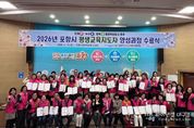 파이낸셜대구경북 기자 | 포항시는 지난 10일 평생학습원 소강당에서 수료생 44명을 대상으로 ‘2026년 포항시 평생교육지도자 양성과정’ 수료식을 가졌다. 이번 교육은 지난 3월 18일부터 4월 10일까지 총 15회(45시간)에 걸쳐 진행됐다. 교육 과정은 ▲평생교육 및 평생교육지도자 이해 ▲마을 평생교육 프로그램 기획 및 운영 ▲평생학습도시 비교 견학 등 실무 역량 강화에 중점을 두고 전문 인력을 양성하는 체계적인 과정으로 구성됐다. 이날 수료식에는 조현미 평생학습원장, 박진숙 평생교육과장, 김용재 평생교육지도자협의회장 등이 참석해 수료생들을 축하했으며, 전체 수료생 44명을 대표해 최설옥 씨가 수료증을 받았다. 조현미 평생학습원장은 “지속가능한 평생학습도시 조성을 위해서는 현장에서 발로 뛰는 지도자들의 역할이 무엇보다 중요하다”며 “앞으로도 민·관 협력을 통해 교육 소외계층 해소에 노력하고 마을 단위 평생학습이 활성화될 수 있도록 적극 지원하겠다”고 말했다. 한편, 포항시 평생교육지도자협의회는 민간 주도의 평생학습 활성화를 위해 찾아가는 동경대학 운영, 민·관·군 행복학습센터 운영