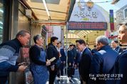 파이낸셜대구경북 김유신 기자 | 이재명 대통령은 13일 오후, 충북 청주 사창시장을 방문하여 민생 현장의 활기를 점검하고 지역 주민 및 상인들과 진솔한 소통의 시간을 가졌다. 청주 사창시장은 조선시대 양곡을 보관했다는 데에서 유래를 찾을 수 있는 유서 깊은 곳으로, 1980년대 현대적 시장의 면모를 갖춘 이래 지역 경제의 중심이자 종합시장으로서 소임을 다해오고 있다. 상인회장의 안내로 시장 곳곳을 둘러본 이 대통령은 장을 보러 나온 시민들과 반갑게 인사를 나누었다. 사창시장을 찾은 시민들은 뜨거운 박수와 환호로 대통령을 맞이했으며, 상인들은 “사창시장을 방문해 준 첫 대통령”이라며 반가움을 표했다. 상인들은 대통령의 손을 맞잡고 “더 살기 좋은 나라를 만들어 달라”, “건강을 잘 챙기며 일해 달라”는 격려와 응원을 전하며 따뜻한 포옹을 나누기도 했다. 특히 이 대통령은 시장 내 한 두부가게를 방문해 국산 콩으로 두부를 만드는 과정을 세심하게 살핀 뒤, 가게 안 평상에서 상인회장 및 주인 부부와 나란히 앉아 갓 만든 즉석 두부를 시식하며 담소를 나누었다. 이 대통령이 국산 콩과 수입 콩 두부의 선호도를 묻자, 주인은 “국산