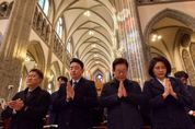 파이낸셜대구경북 김유신 기자 | 이재명 대통령과 김혜경 여사가 25일 서울 중구 명동대성당에서 열린 성탄 대축일 미사에서 기도를 하고 있다. [뉴스출처 : 대통령실]